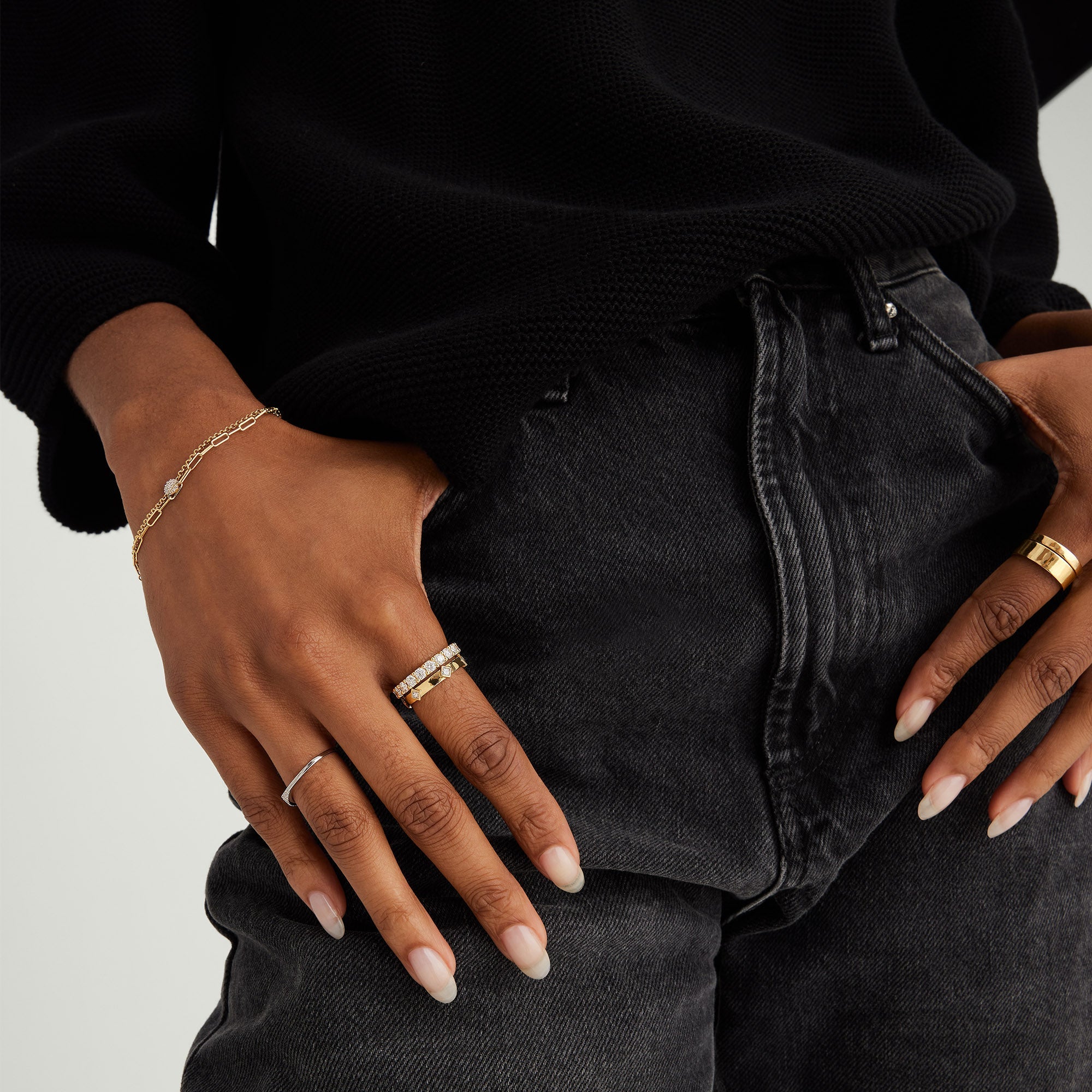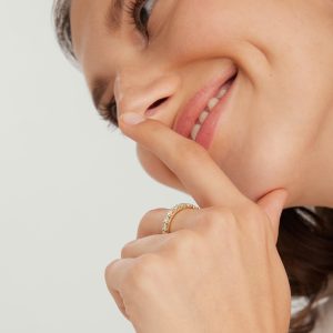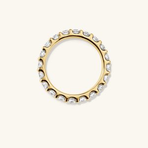Finding a ring you’ll love for a lifetime is something to celebrate. Here it is: a bold ring handcrafted in 14k solid gold featuring as many as 22 round brilliant cut diamonds. Each diamond is hand-set in a basket of open prongs to enhance the sparkle.