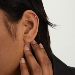 The perfect starter stud designed to go with everything. Handcrafted in 14k solid gold. Threadless flat back studs allow for maximum comfort and help to facilitate the healing process. The backing post is crafted using implant grade titanium that is safe for all metal sensitivities.