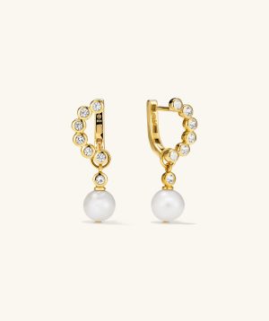 The Remy Gemstone Pearl Charm Hoops are about to become the MVP of your jewelry box. Gemstone encrusted earrings in a C shape feature a removable pearl charm that’s yours to mix, remix, and style. Try it with a different charm (like a colorful gemstone) or on its own for something subtle.